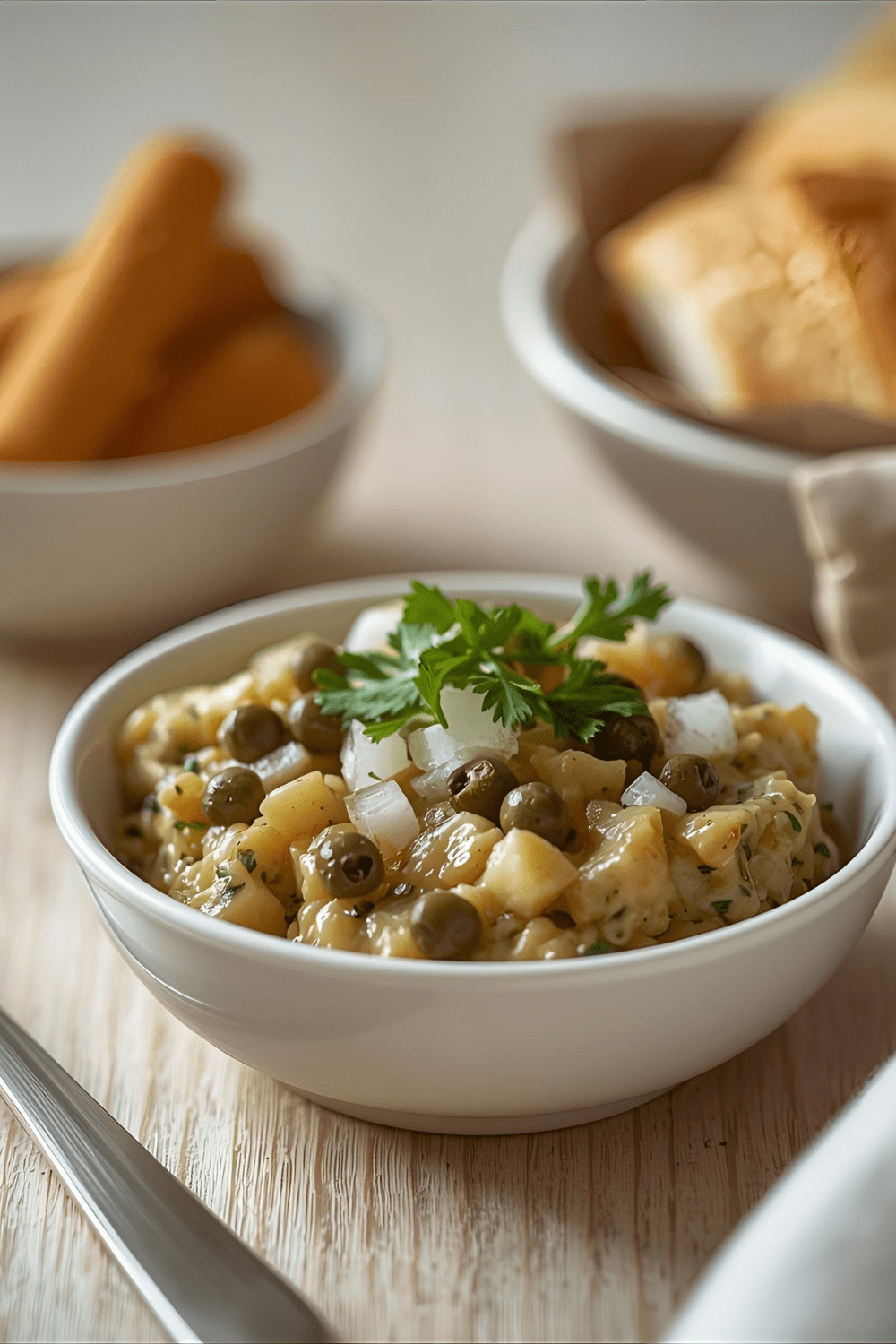 Dieses Auberginen-Tatar mit Kapern & Senf ist eine wunderbare Alternative zu klassischen Vorspeisen: kalorienarm, vegetarisch, kreativ und voller Geschmack. Perfekt für alle, die Gäste beeindrucken oder sich selbst etwas Besonderes gönnen möchten – ganz ohne schwere Zutaten
